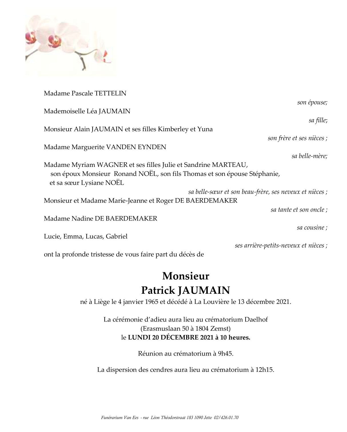 Fallecido en La Louvière (7100) el lunes, 13 de diciembre de 2021 a la edad de 56 años