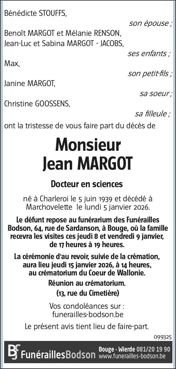 Fallecido en Fernelmont (5380) el lunes, 5 de enero de 2026 a la edad de 86 años
