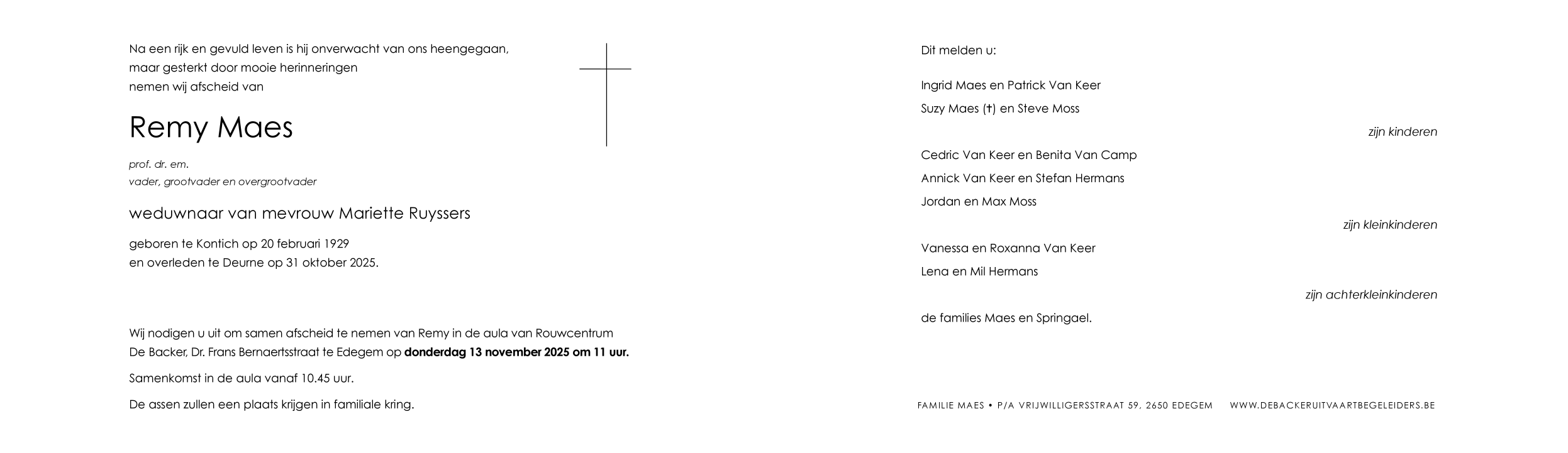 Overlijdensbericht van Remy Maes