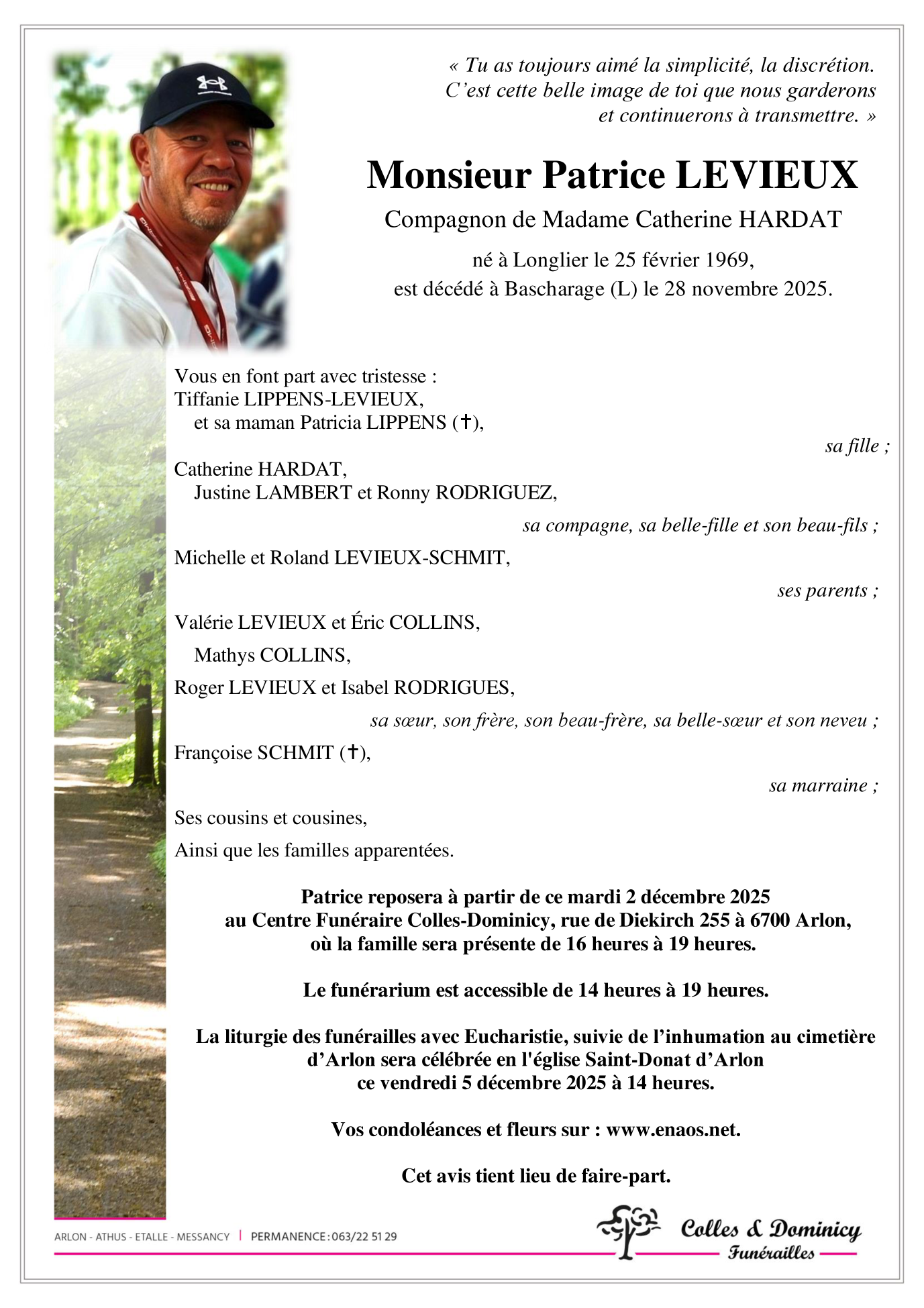 Died in Bascharage/Ateliers  (4908, Luxembourg) on 28 November 2025 at the age of 56 years