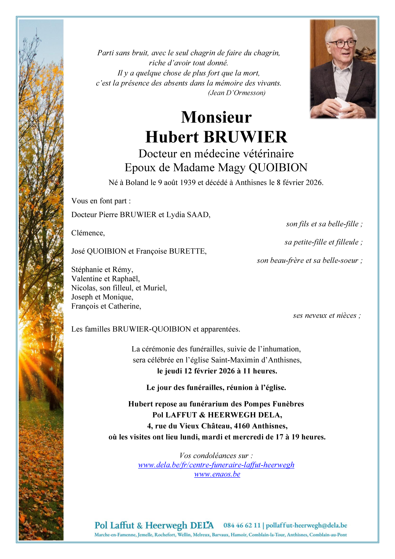 Décédé à Anthisnes (4160) le dimanche 8 février 2026 à l'âge de 86 ans