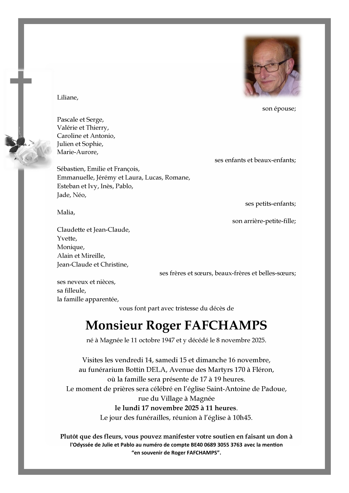 Died in Magnée (4623) on 08 November 2025 at the age of 78 years