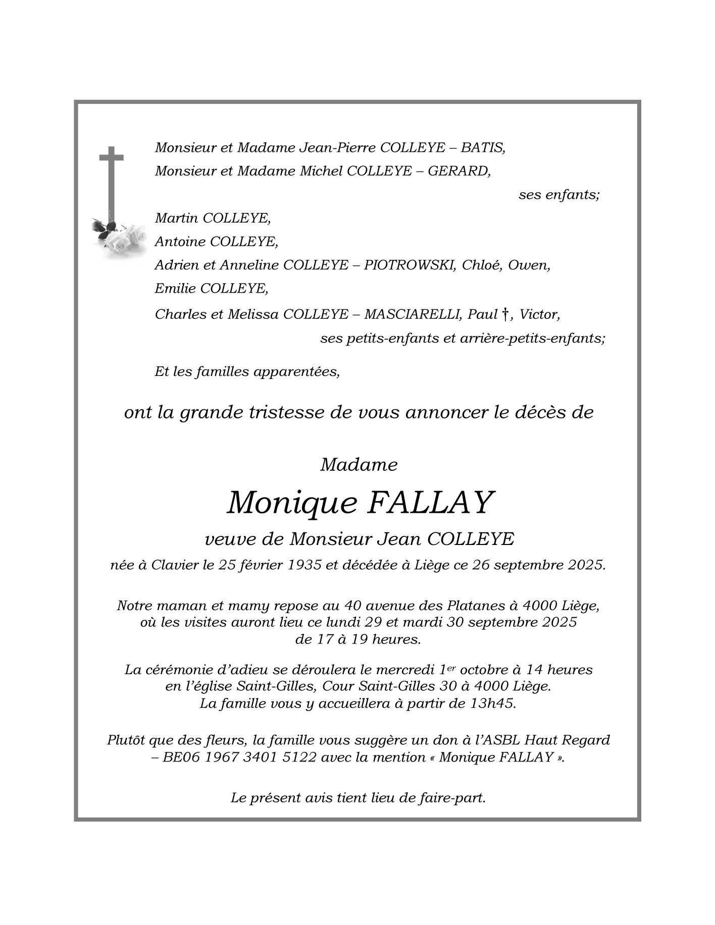 Died in Liège (4000) on 26 September 2025 at the age of 90 years