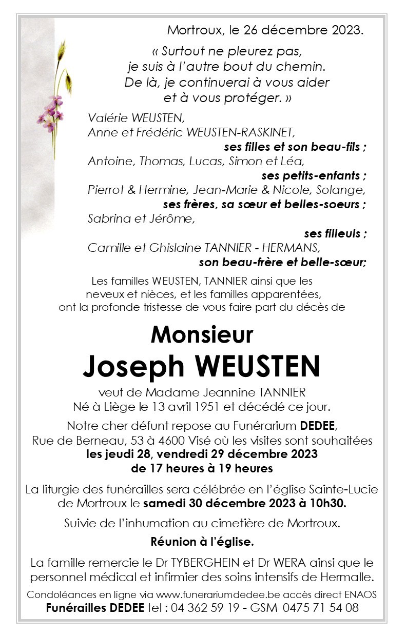 Décédé à Hermalle-sous-Argenteau (4681) le mardi 26 décembre 2023 à l'âge de 72 ans