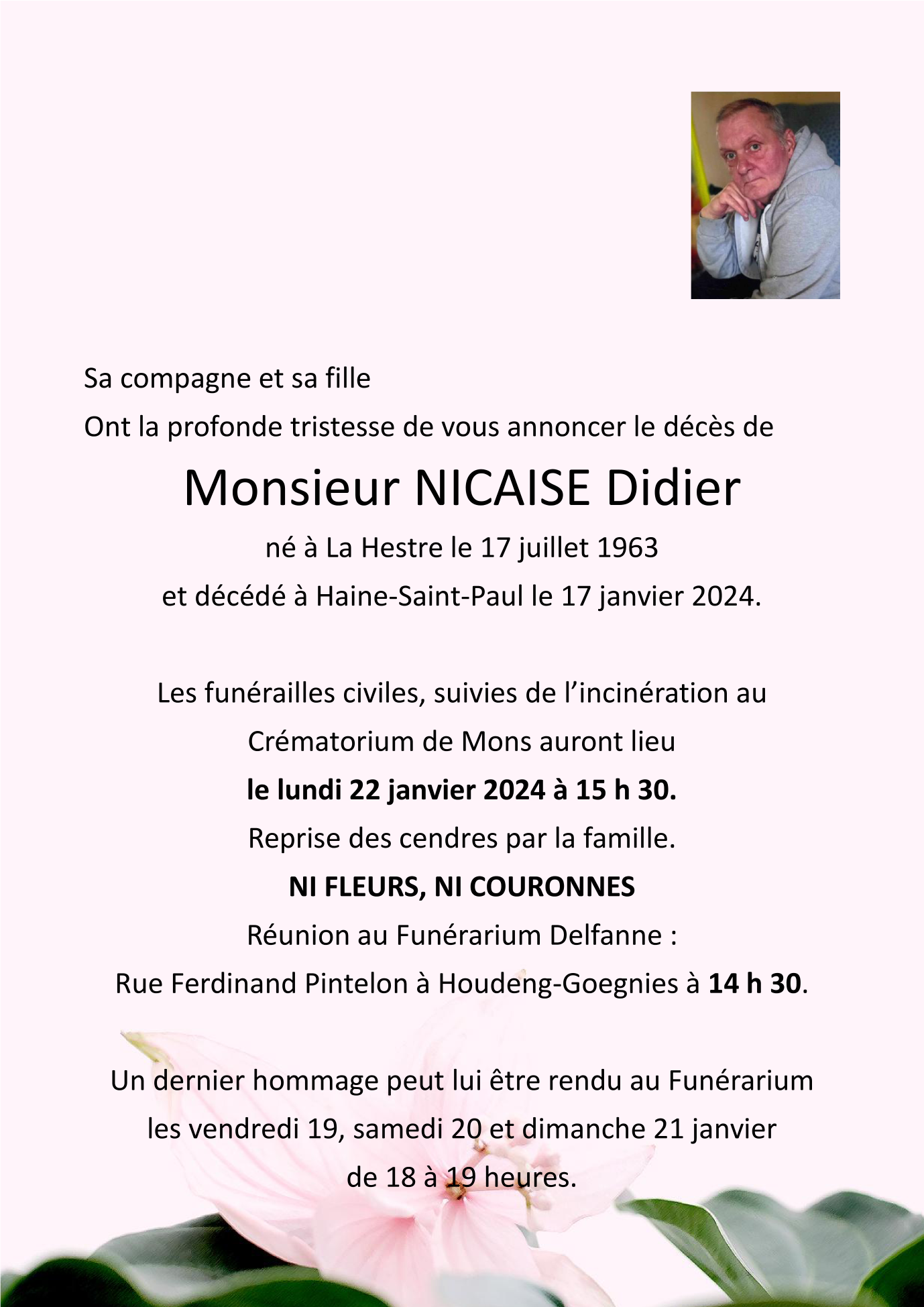 Overleden te Haine-Saint-Paul (7100) op woensdag 17 januari 2024 op 60-jarige leeftijd