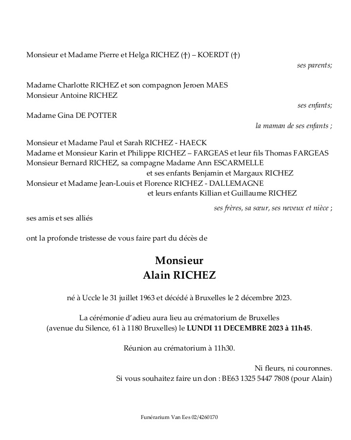 Décédé à Bruxelles (1000) le samedi 2 décembre 2023 à l'âge de 60 ans
