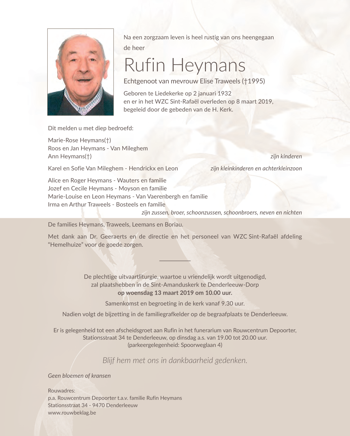 Overleden te Liedekerke (1770) op vrijdag 8 maart 2019 op 87-jarige leeftijd