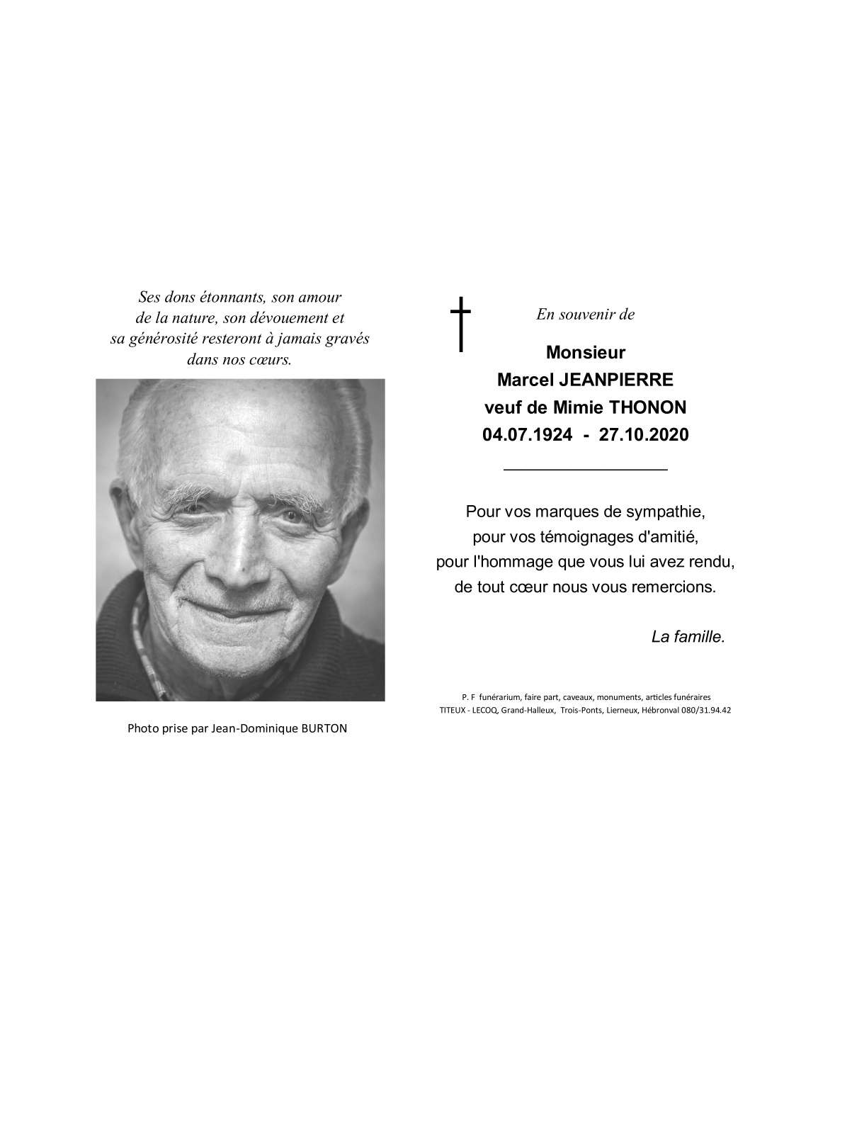 Décédé à Aisomont (4980) le mardi 27 octobre 2020 à l'âge de 96 ans