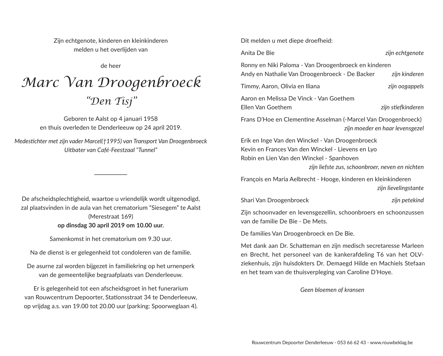 Fallecido en Denderleeuw (9470) el miércoles, 24 de abril de 2019 a la edad de 61 años