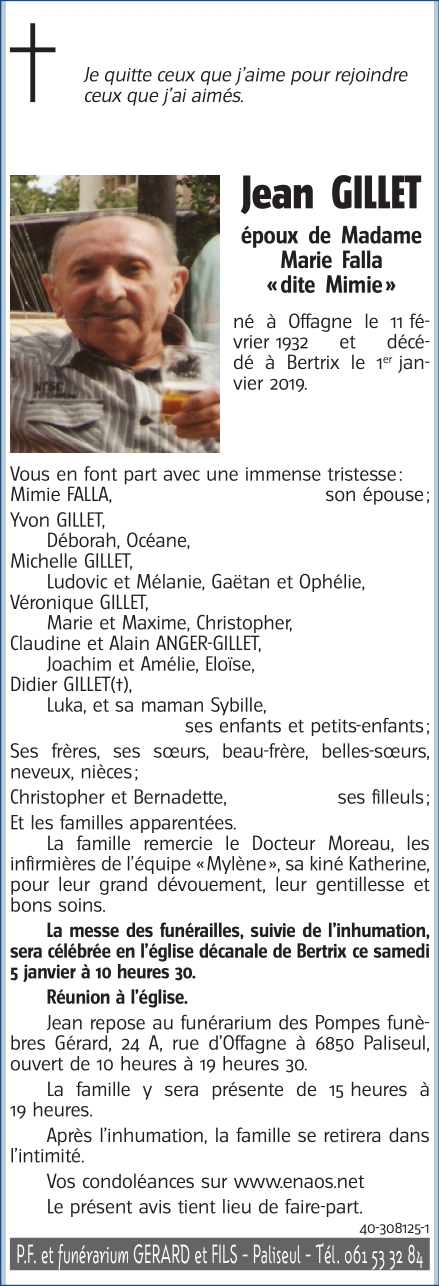 Overleden te Bertrix (6880) op dinsdag 1 januari 2019 op 86-jarige leeftijd