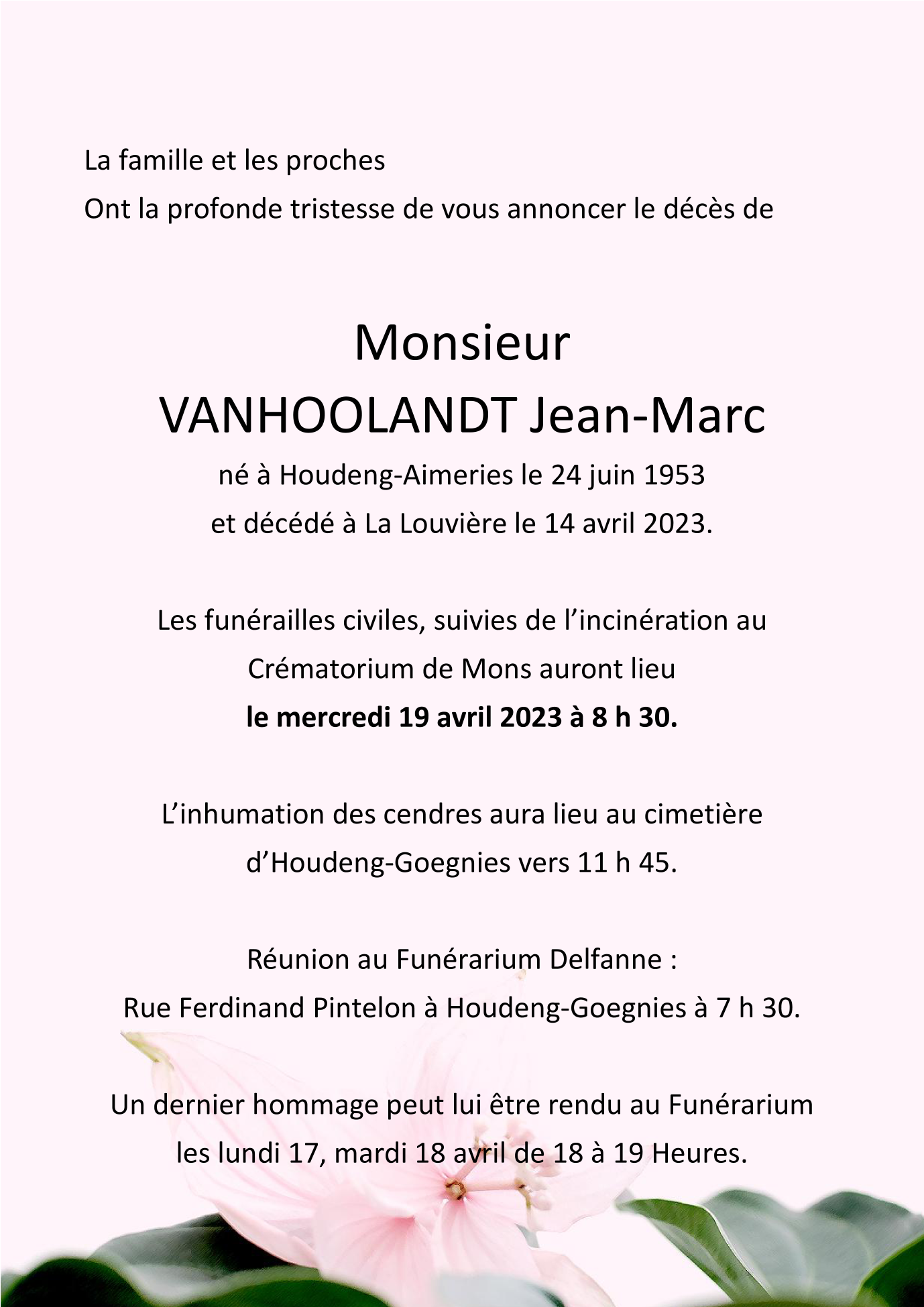 Overleden te La Louvière (7100) op vrijdag 14 april 2023 op 69-jarige leeftijd