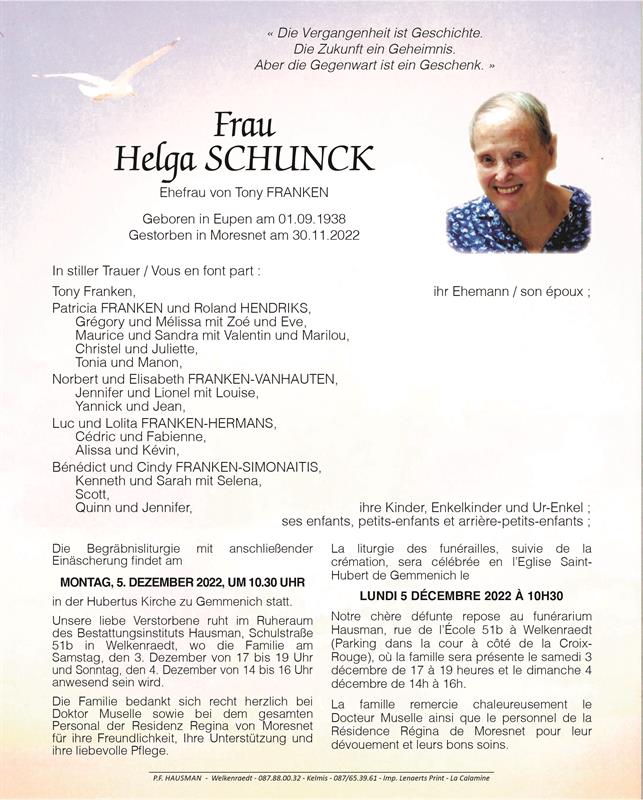 Overleden te Moresnet (4850) op woensdag 30 november 2022 op 84-jarige leeftijd