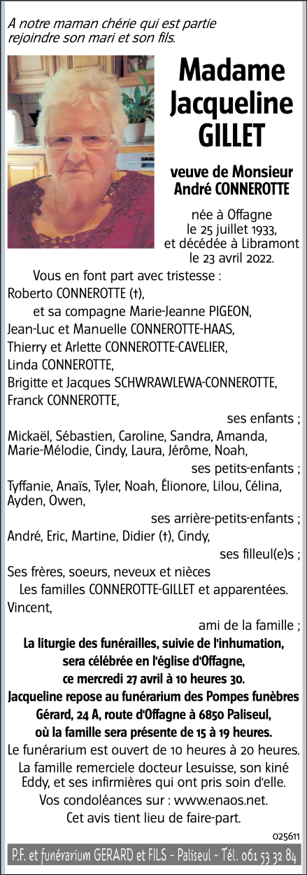 Widow of Monsieur André CONNEROTTE