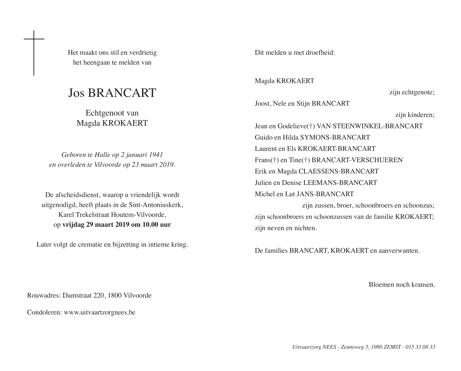 Overleden te Vilvoorde (1800) op zaterdag 23 maart 2019 op 78-jarige leeftijd