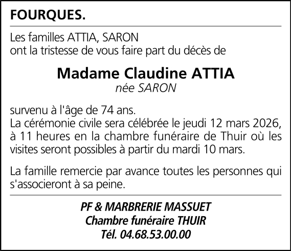 Fallecida en Fourques (66300, Francia) el domingo, 1 de marzo de 2026 a la edad de 74 años