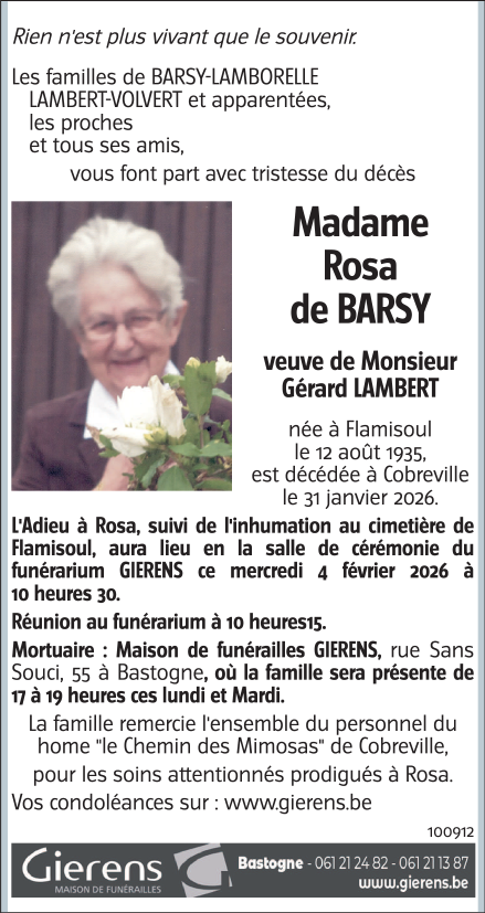 Fallecida en Vaux-sur-Sure (6640) el sábado, 31 de enero de 2026 a la edad de 90 años