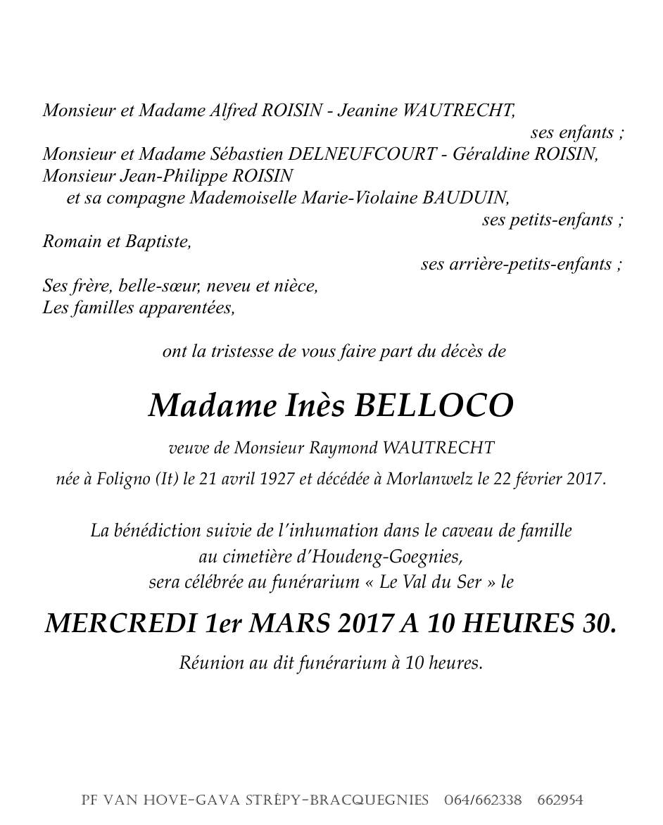 Widow of Monsieur Raymond WAUTRECHT
