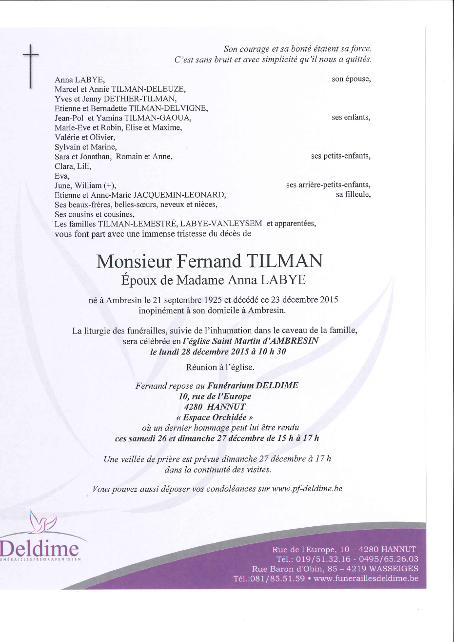 Overleden te Ambresin (4219) op woensdag 23 december 2015 op 90-jarige leeftijd