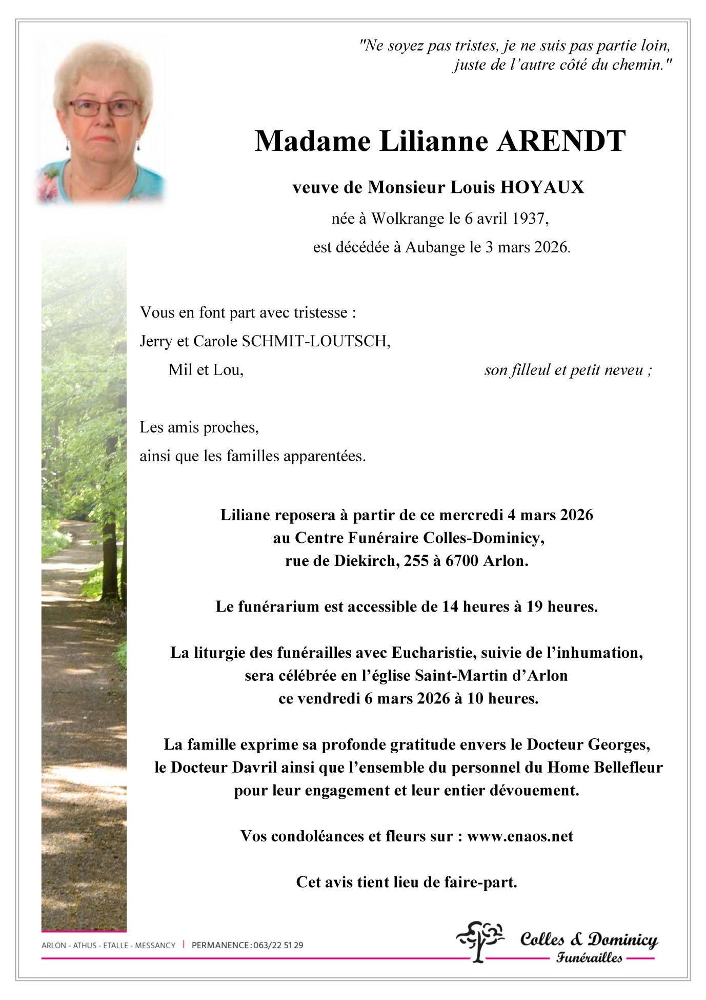 Fallecida en Aubange (6790) el martes, 3 de marzo de 2026 a la edad de 88 años