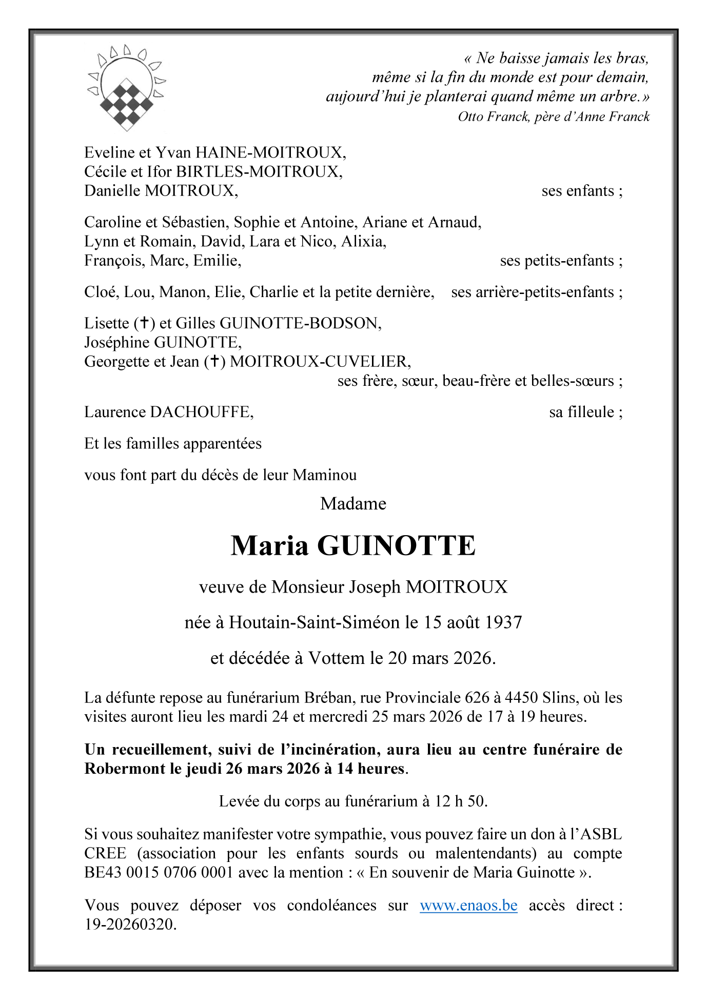 Mevrouw Maria GUINOTTE veuve de Joseph MOITROUX