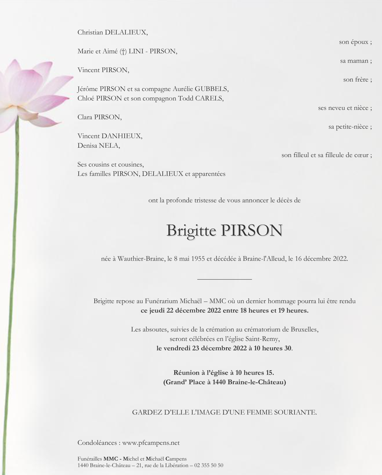 Décédée à Braine-l'Alleud (1420) le vendredi 16 décembre 2022 à l'âge de 67 ans