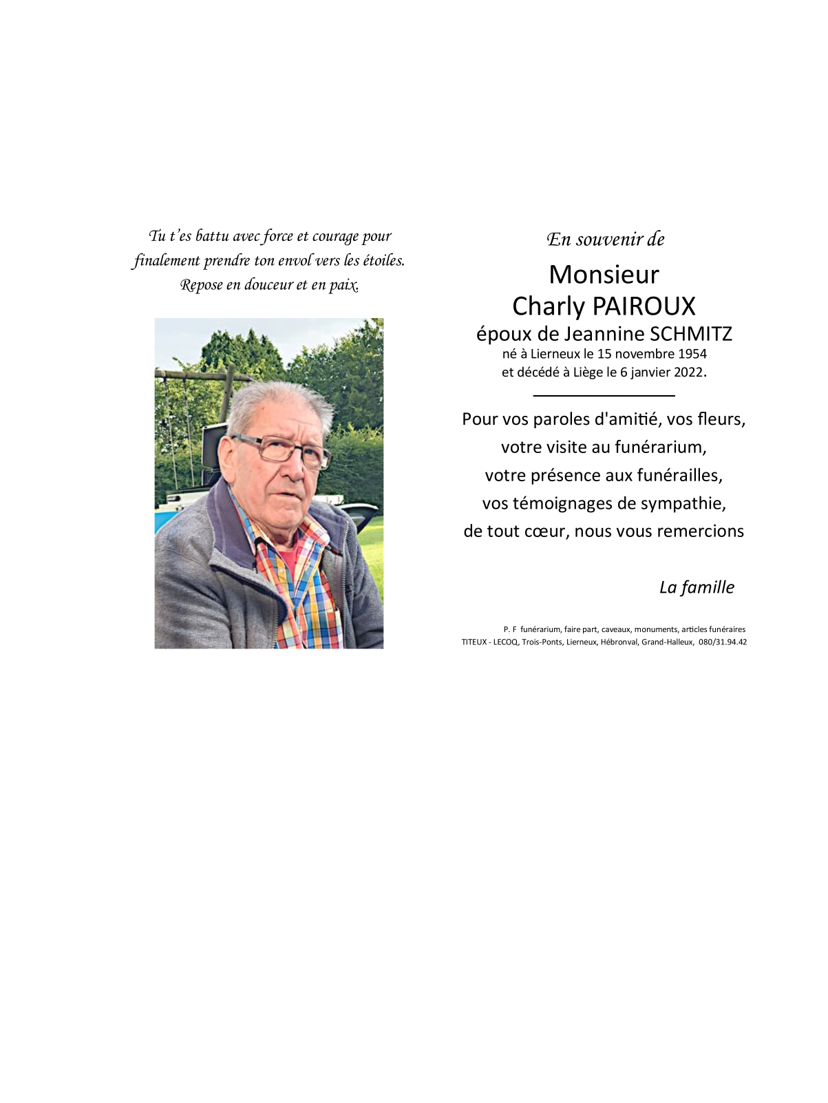 Overleden te Liège (4000) op vrijdag 7 januari 2022 op 67-jarige leeftijd