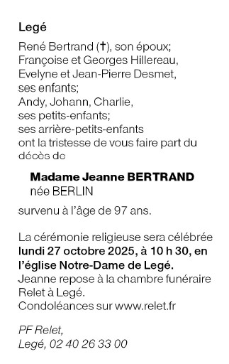 Overleden te Legé (44650, Frankrijk) op donderdag 23 oktober 2025 op 97-jarige leeftijd