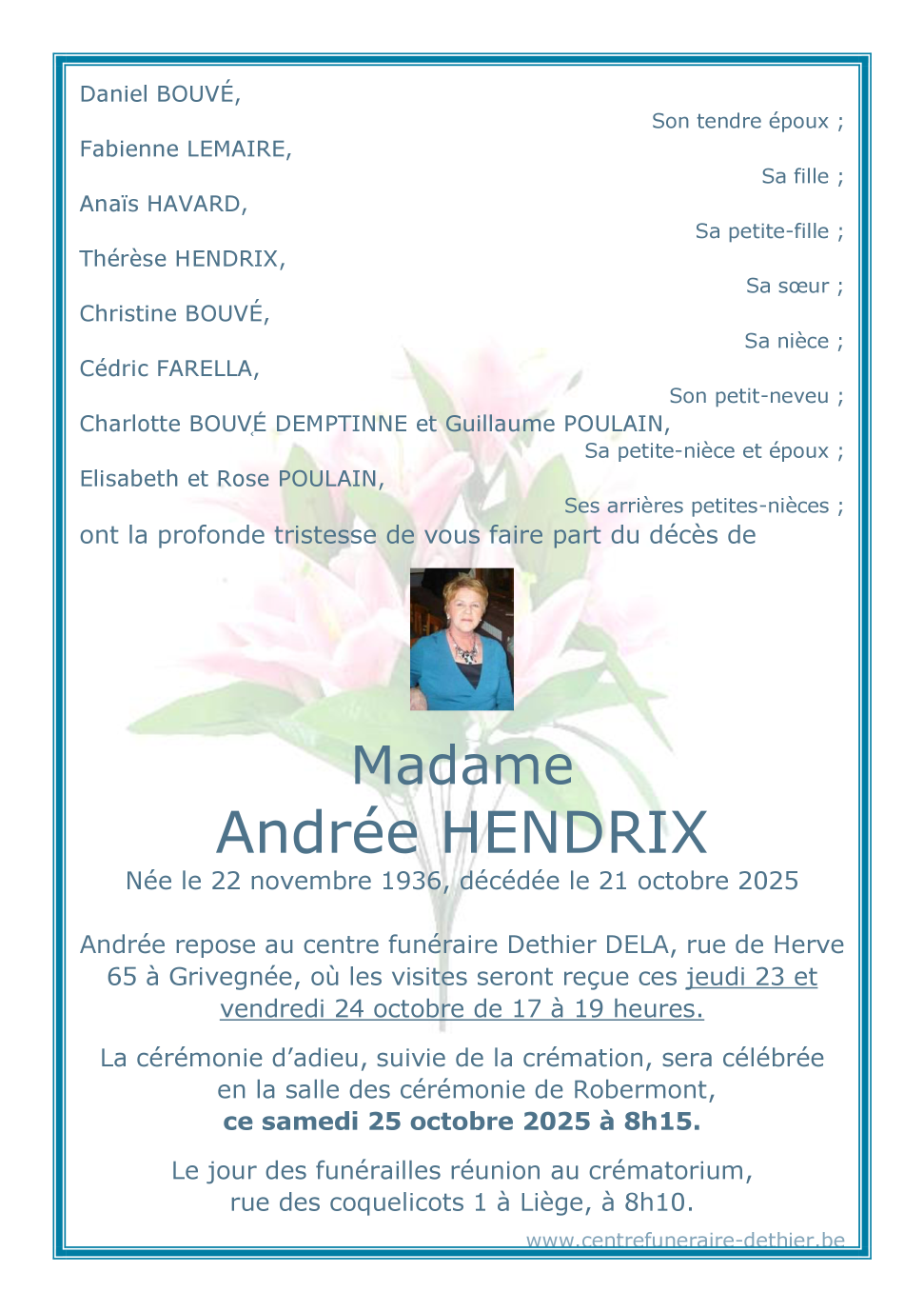 Died in Grivegnée (4030) on 21 October 2025 at the age of 88 years