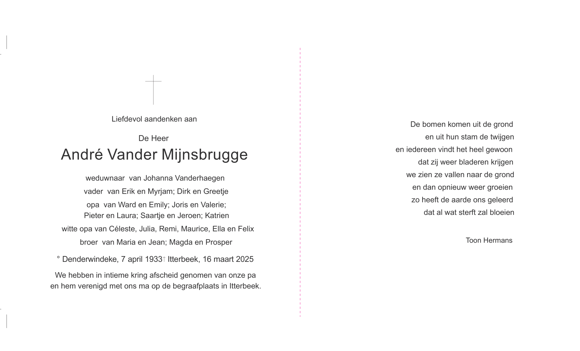 Décédé à Itterbeek (1701) le dimanche 16 mars 2025 à l'âge de 91 ans