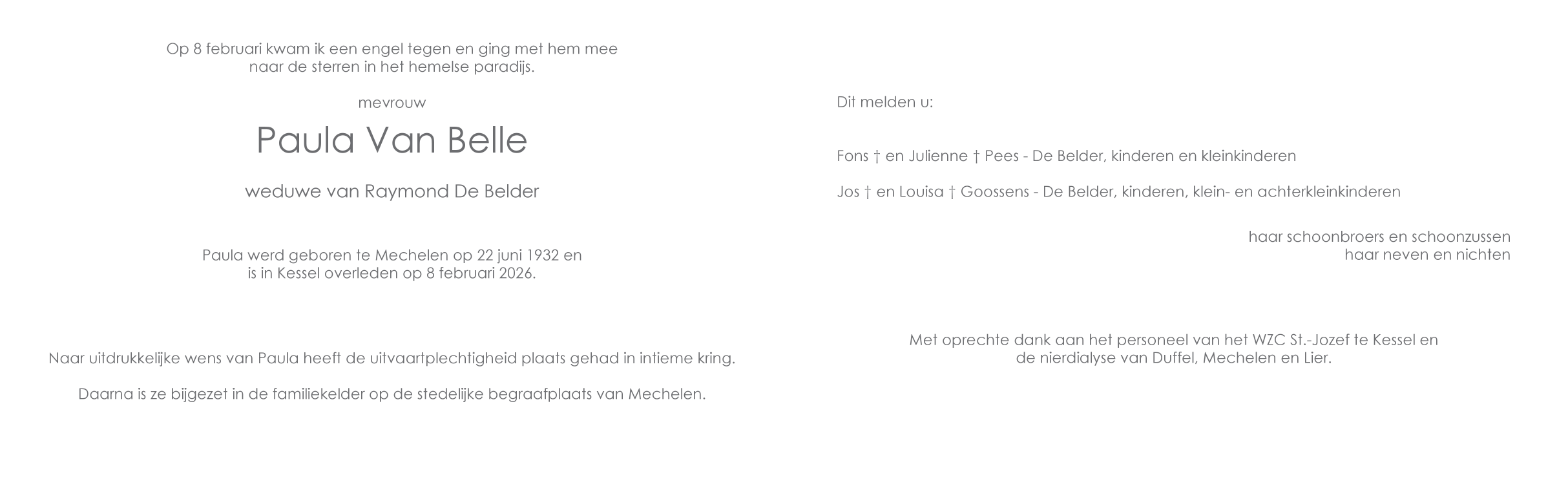 Overleden te Kessel (2560) op zondag 8 februari 2026 op 93-jarige leeftijd