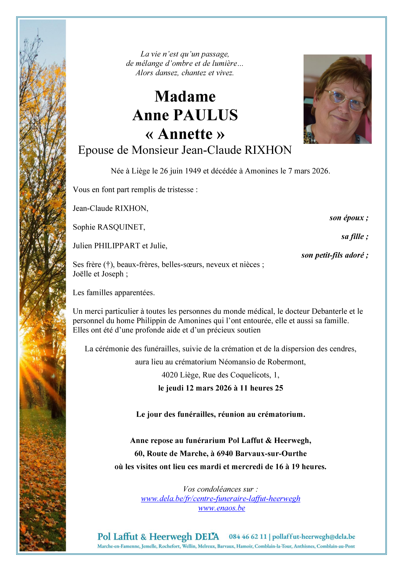 Epouse de Monsieur Jean-Claude RIXHON