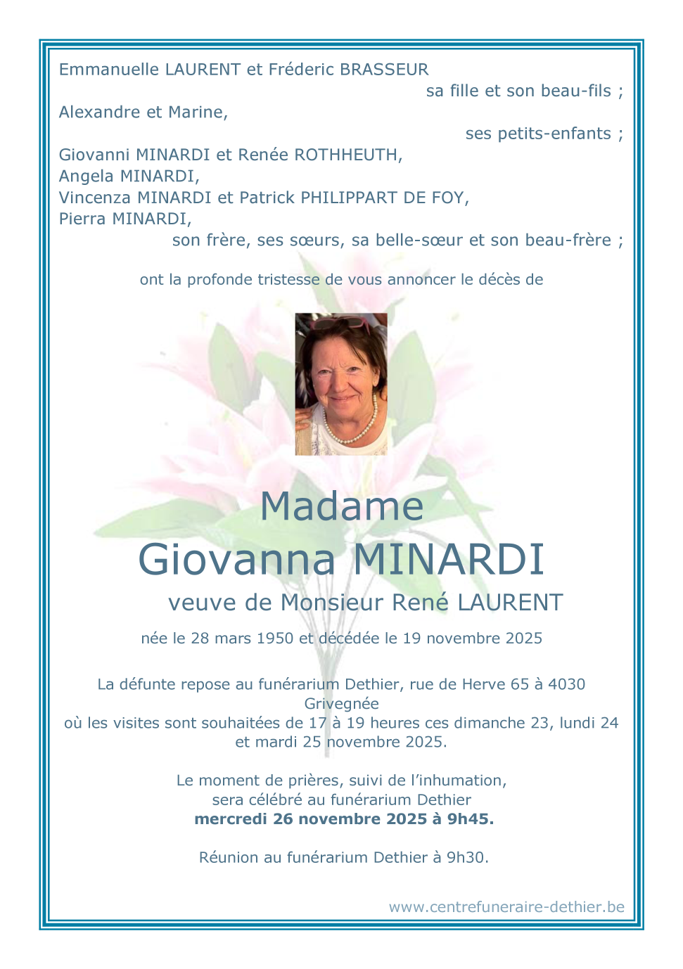 Décédée à Liège (4000) le mercredi 19 novembre 2025 à l'âge de 75 ans