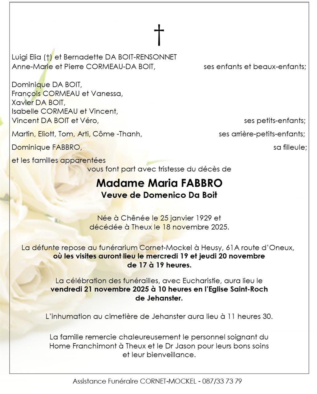 Décédée à Theux (4910) le mardi 18 novembre 2025 à l'âge de 96 ans