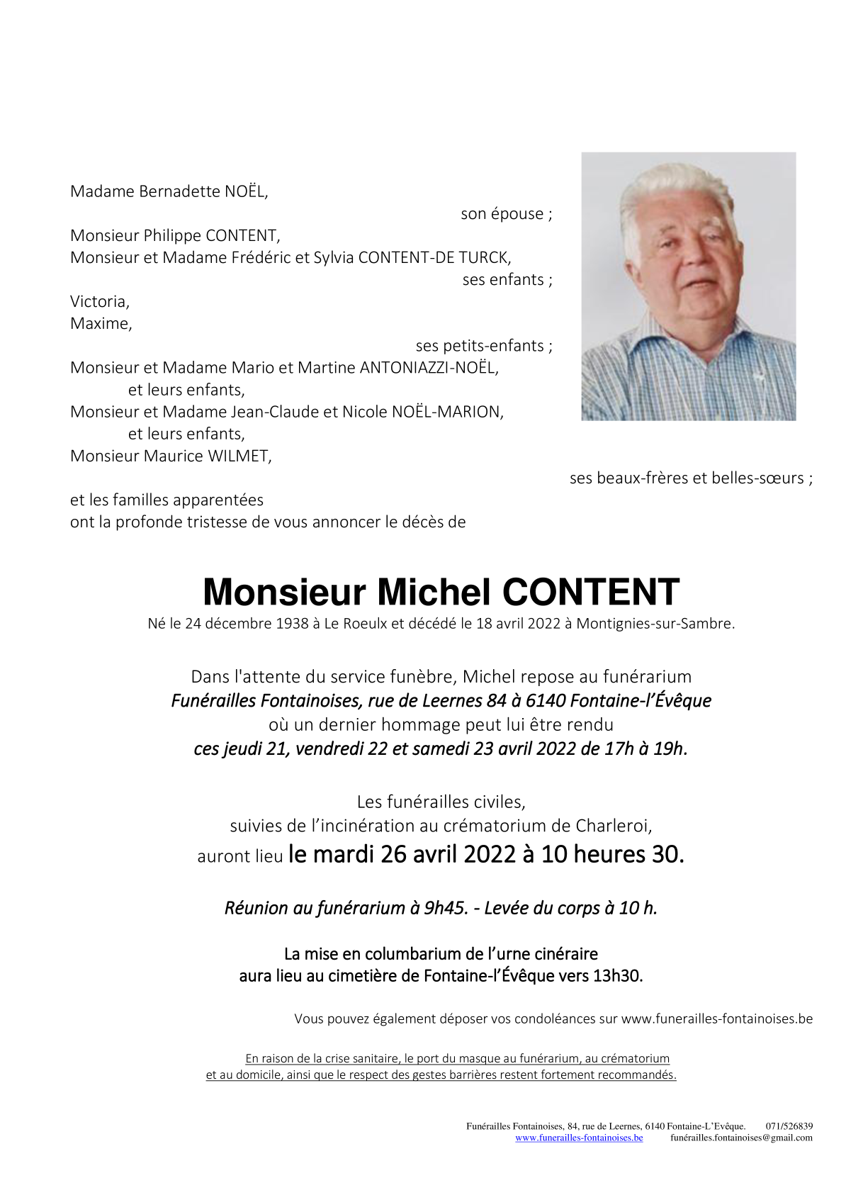 Décédé à Montignies-sur-Sambre (6010) le lundi 18 avril 2022 à l'âge de 83 ans