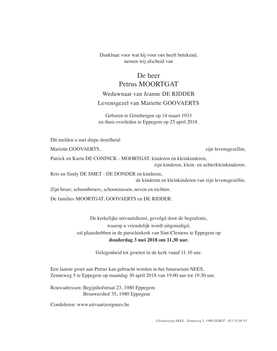 Overleden te Eppegem (1980) op woensdag 25 april 2018 op 85-jarige leeftijd