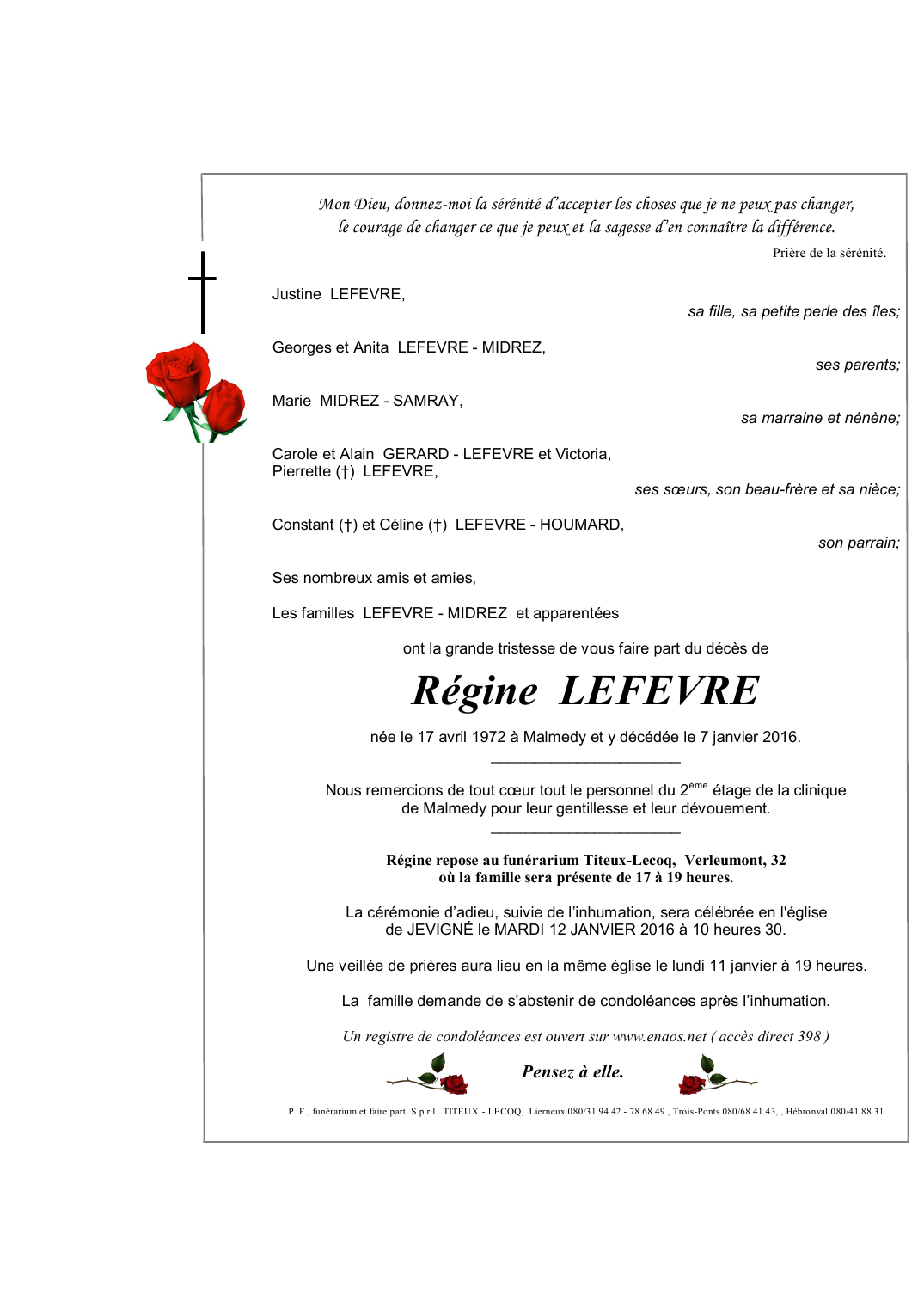 Décédé à Malmedy (4960) le jeudi 7 janvier 2016 à l'âge de 43 ans
