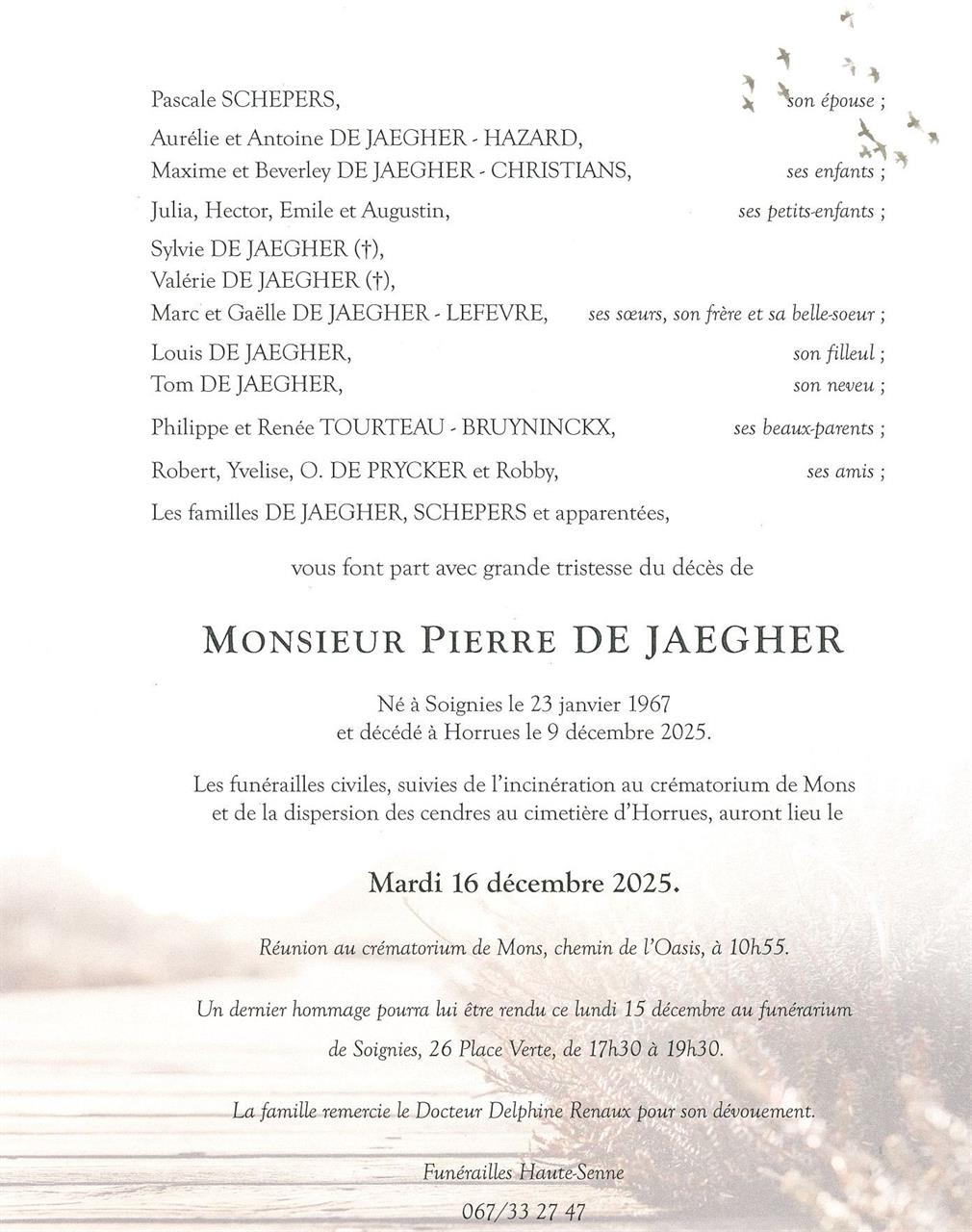 Décédé à Horrues (7060) le mardi 9 décembre 2025 à l'âge de 58 ans