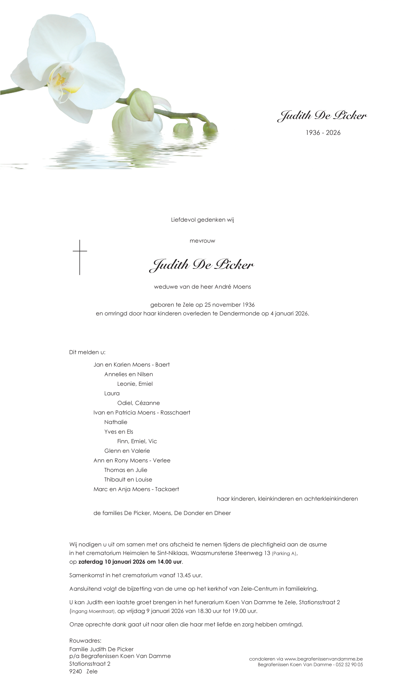 Overleden te Dendermonde (9200) op zondag 4 januari 2026 op 89-jarige leeftijd