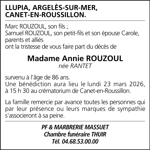 Veuve de Monsieur Michel ROUZOUL