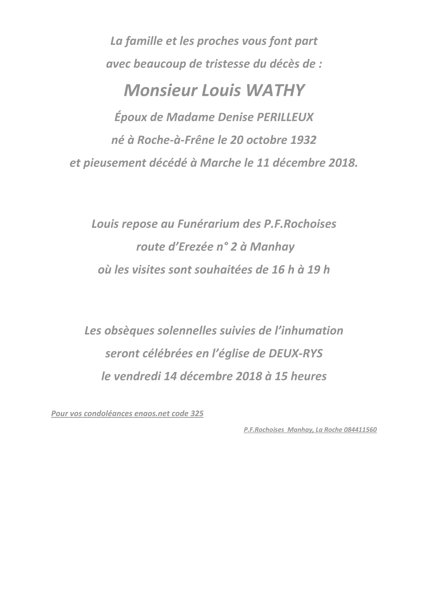 Décédé à Marche-en-Famenne (6900) le mardi 11 décembre 2018 à l'âge de 86 ans