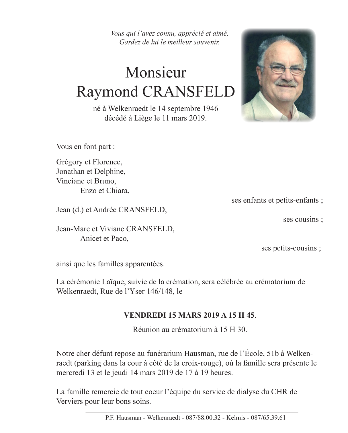 Monsieur Raymond CRANSFELD