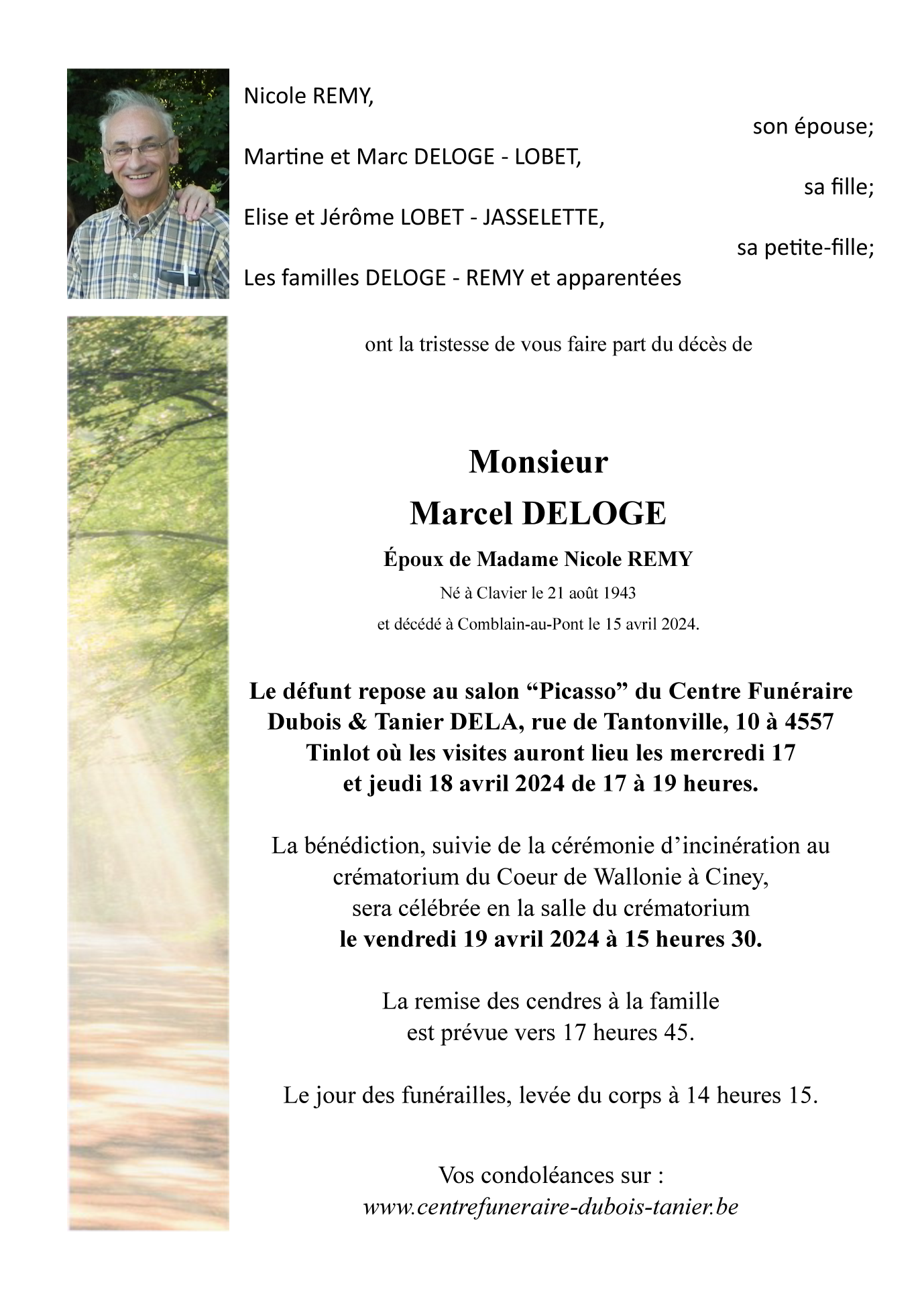 Overleden te Comblain-au-Pont (4170) op maandag 15 april 2024 op 80-jarige leeftijd