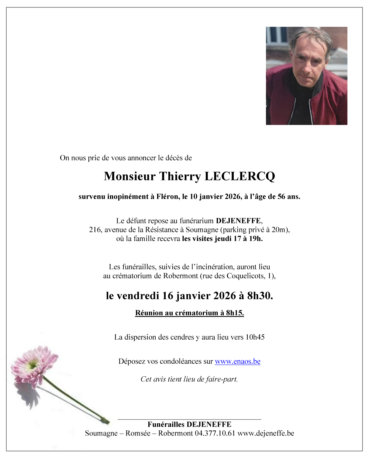 Overleden te Fléron (4620) op zaterdag 10 januari 2026 op 56-jarige leeftijd