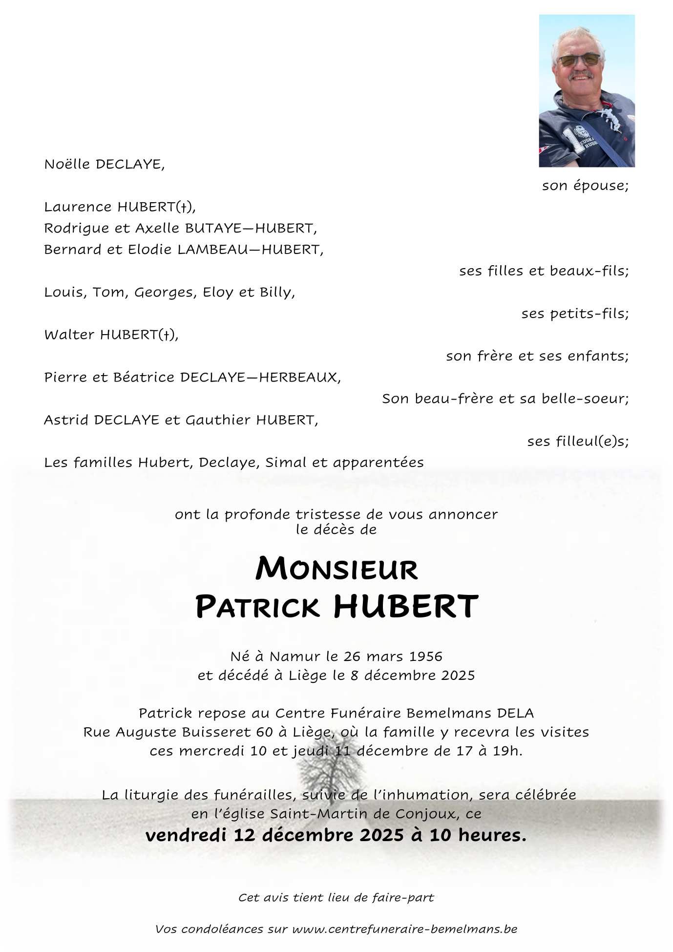 Décédé à Liège (4000) le lundi 8 décembre 2025 à l'âge de 69 ans