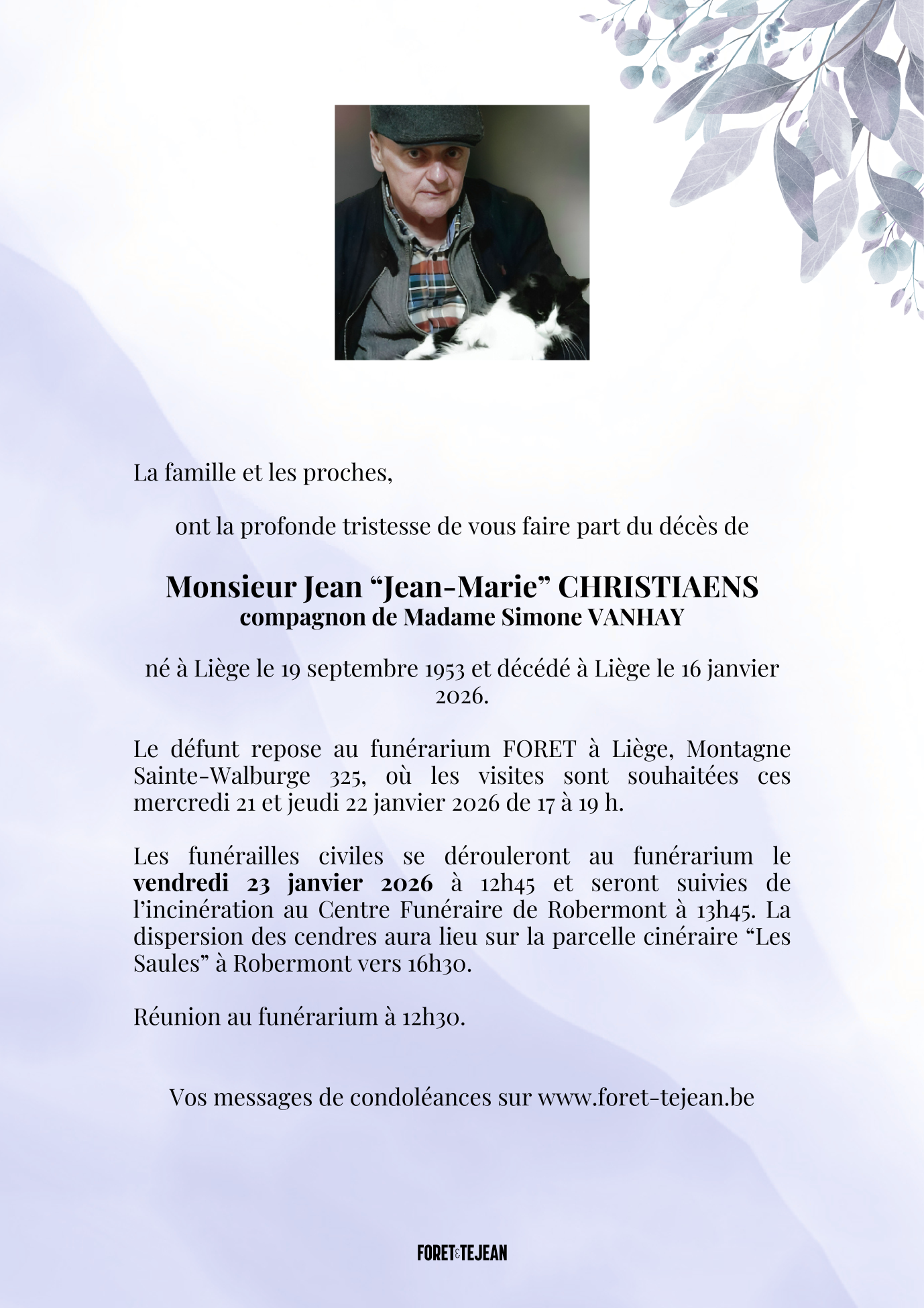 Overleden te Liège (4020) op vrijdag 16 januari 2026 op 72-jarige leeftijd