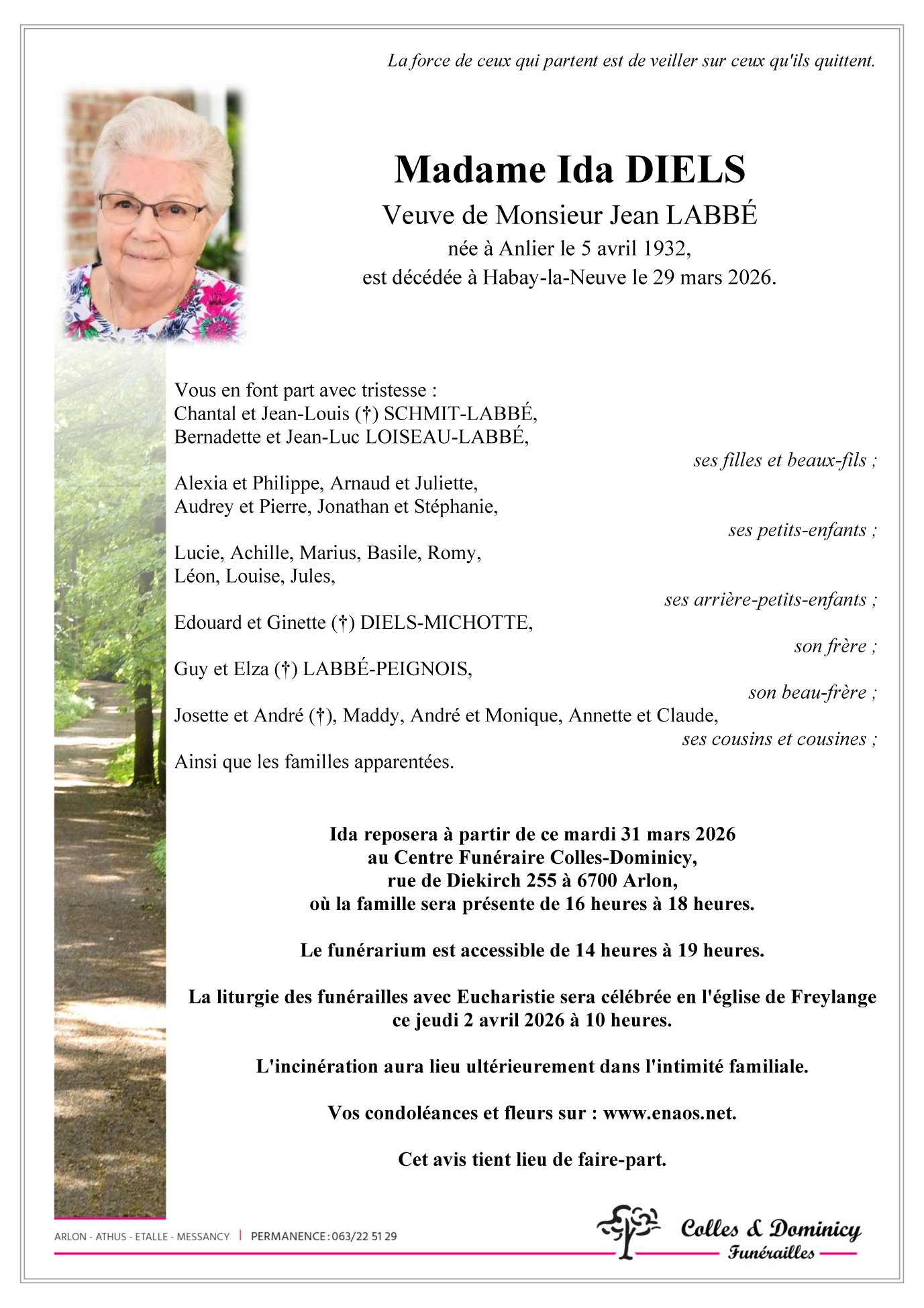 Died in Habay (6720) on 29 March 2026 at the age of 93 years