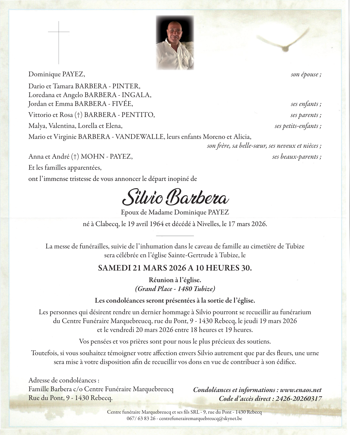 Died in Nivelles (1400) on 17 March 2026 at the age of 61 years