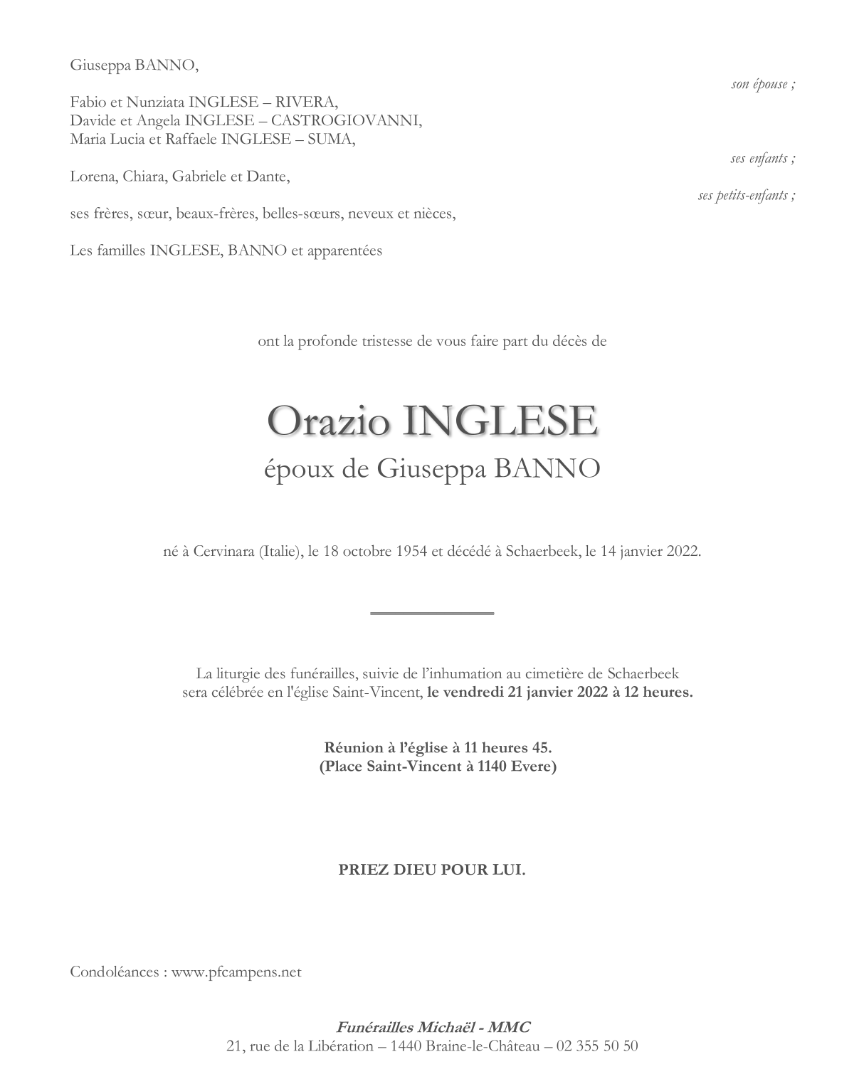 Died in Schaerbeek (1030) on 14 January 2022 at the age of 67 years