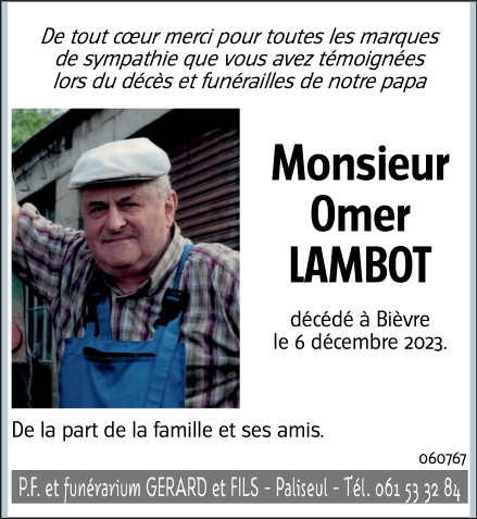 Died in Bievre (5555) on 07 December 2023 at the age of 89 years