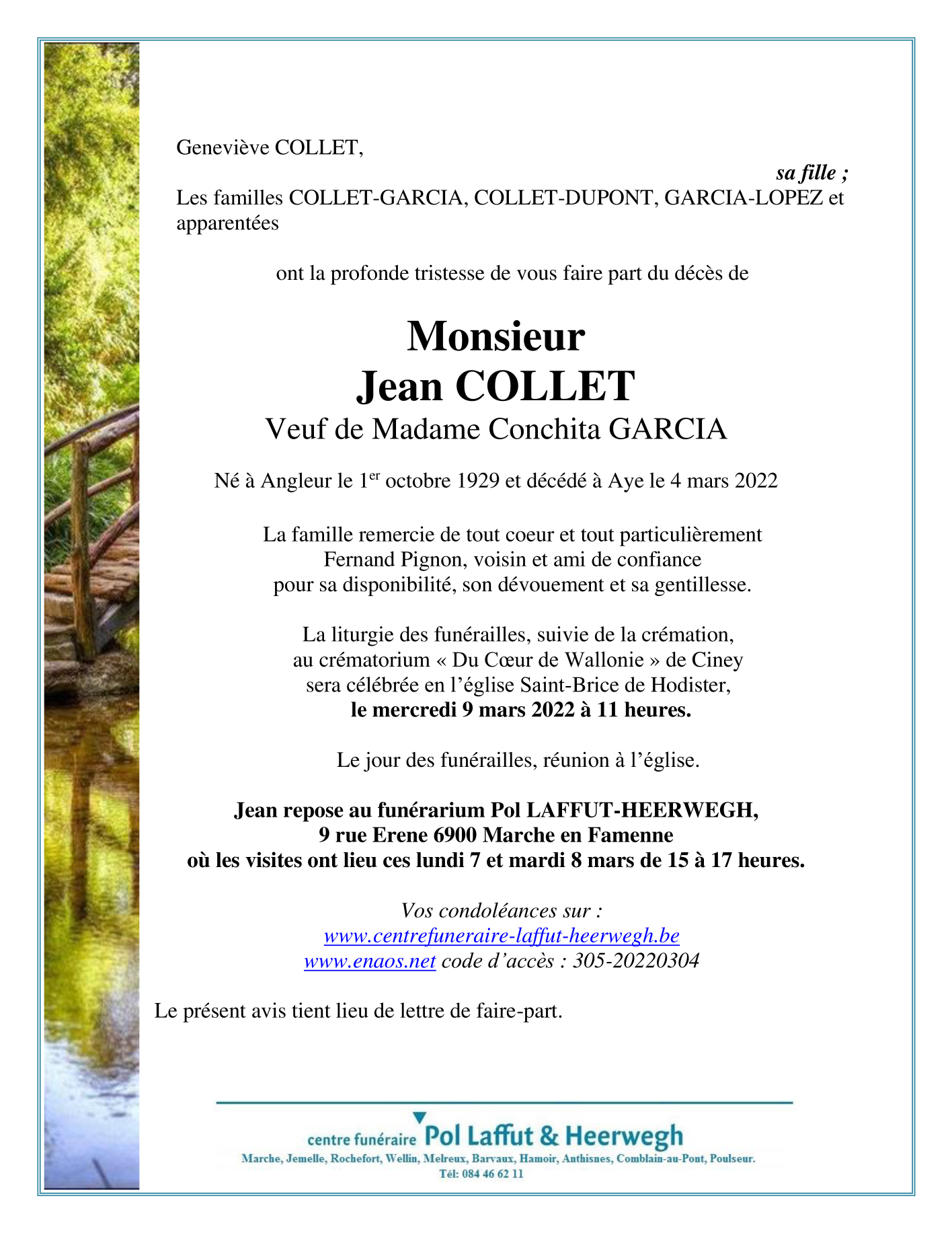Décédé à Aye (6900) le vendredi 4 mars 2022 à l'âge de 92 ans